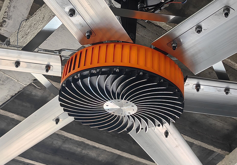 本司設(shè)計(jì)的永磁同步直驅(qū)電機(jī),具有能耗低、發(fā)熱低、不退磁等優(yōu)點(diǎn);同時(shí)具有防塵、防濺的功能,適用于大部分室內(nèi)生產(chǎn)場(chǎng)所??朔鹘y(tǒng)工業(yè)風(fēng)扇使用的異步減速機(jī)笨重、噪音高、能耗高、后期減速箱易磨損、壽命短、維護(hù)成本高等缺點(diǎn)。當(dāng)春秋季節(jié)轉(zhuǎn)速可低于35轉(zhuǎn)時(shí),平均功率不到200W,屬于真正意義上免保養(yǎng)、節(jié)能環(huán)保型工業(yè)風(fēng)扇。